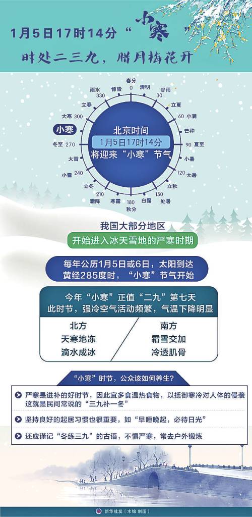 1月5日17時14分“小寒” 時處二三九,臘月梅花開
