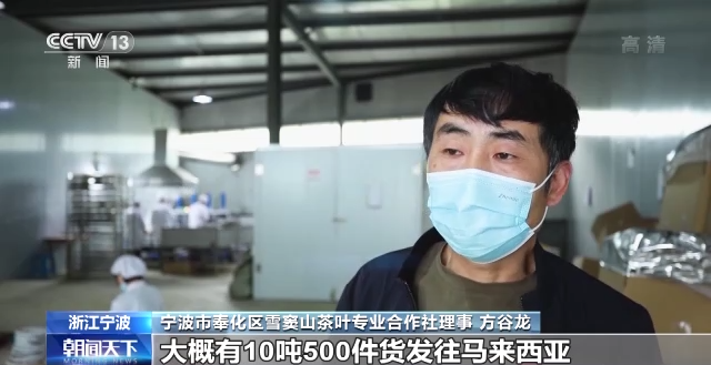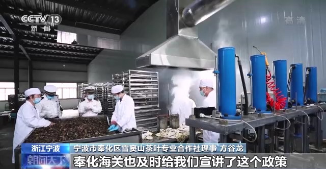 寧波海關(guān)所屬奉化海關(guān)綜合業(yè)務(wù)一科科長 高保立:RCEP(《區(qū)域全面經(jīng)濟(jì)伙伴關(guān)系協(xié)定》)實(shí)施使區(qū)域伙伴關(guān)系更加緊密,我們這批茶葉出口至馬來西亞深加工以后,再出口到RCEP(《區(qū)域全面經(jīng)濟(jì)伙伴關(guān)系協(xié)定》)其他成員國,就可以享受到關(guān)稅紅利,這樣帶來一個(gè)更廣闊的出口市場,也帶動(dòng)我們產(chǎn)業(yè)更多的出口。