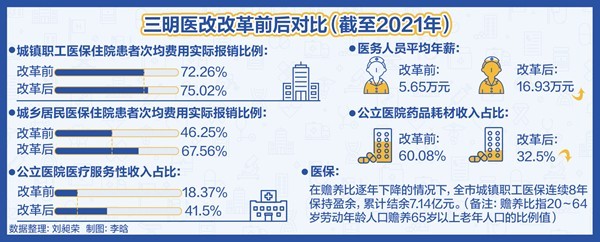 此外,通過實行醫(yī)??傤~付費、結(jié)余留用激勵機(jī)制,緊密型縣域醫(yī)共體將更多工作轉(zhuǎn)向健康管理,試點地區(qū)參保居民住院率從2019年的24%下降至2020年的15%,醫(yī)保實際報銷比提高到61.2%,好于全國平均水平,群眾醫(yī)療費用負(fù)擔(dān)減輕。