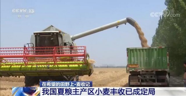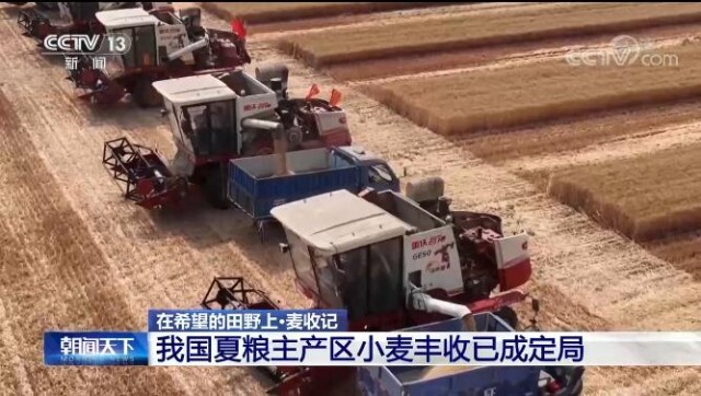 央視網(wǎng)消息:夏糧是全年糧食生產(chǎn)第一季,產(chǎn)量占全年糧食產(chǎn)量五分之一多,其中90%以上都是小麥。農(nóng)業(yè)農(nóng)村部22日發(fā)布的小麥機收進度顯示,夏糧主產(chǎn)區(qū)小麥大規(guī)模機收基本結(jié)束,豐收已成定局。