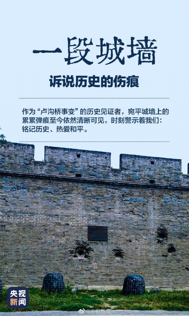 宛平城墻上的彈痕依然清晰可見(jiàn) 警醒我們:吾輩自強(qiáng)!