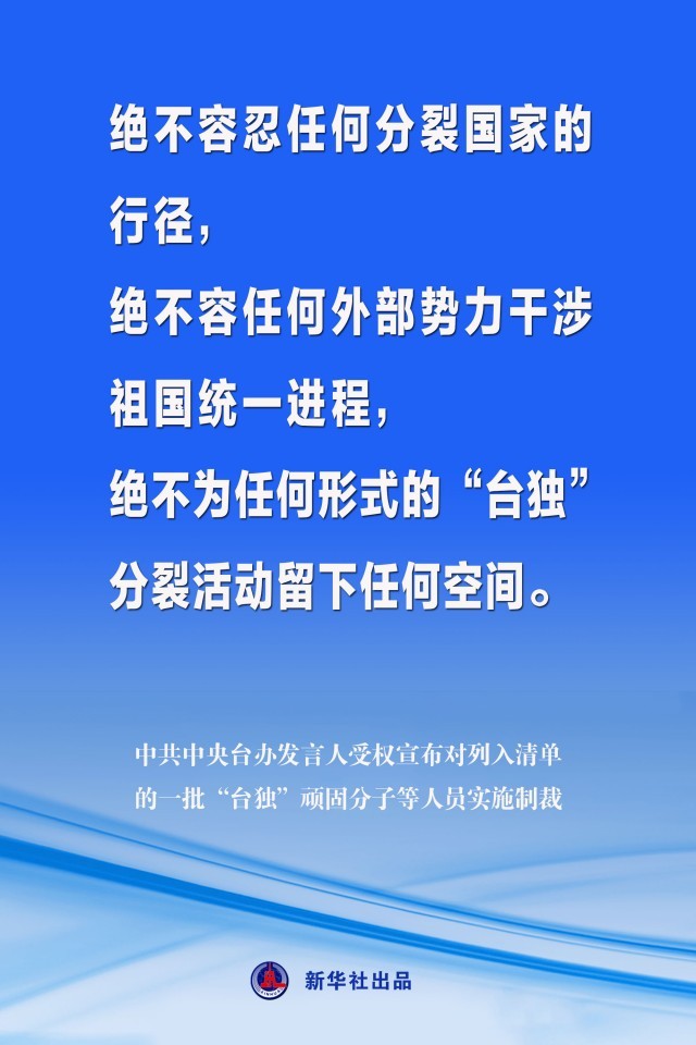 海報丨中共中央臺辦發(fā)言人受權(quán)宣布對列入清單的一批“臺獨”頑固分子等人員實施制裁
