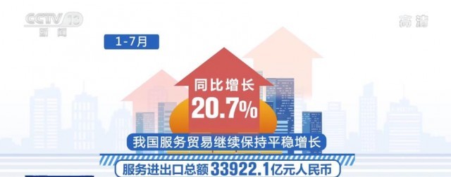央視網(wǎng)消息:今年1—7月份,我國服務(wù)進(jìn)出口總額達(dá)33922.1億元,我國服務(wù)貿(mào)易繼續(xù)保持平穩(wěn)增長。
