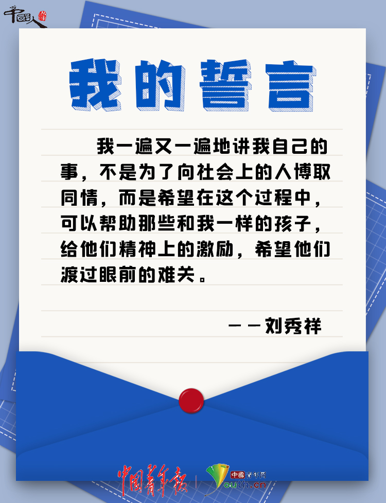 他說:“我一遍又一遍地講我自己的事,不是為了向社會上的人博取同情,而是希望在這個過程中,可以幫助那些和我一樣的孩子,給他們精神上的激勵,希望他們渡過眼前的難關(guān)。”