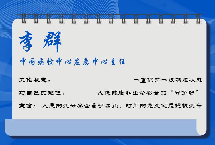 2019年12月31日一早,李群隨中國(guó)疾控中心工作組趕赴武漢,同時(shí)作為國(guó)家衛(wèi)生健康委專家組成員參加工作。他參加制定了《武漢不明原因的病毒性肺炎密切接觸者管理方案》和《應(yīng)急監(jiān)測(cè)方案》。他提出的對(duì)密接人員進(jìn)行14天醫(yī)學(xué)觀察,此后成為密接人員管理的通用做法。