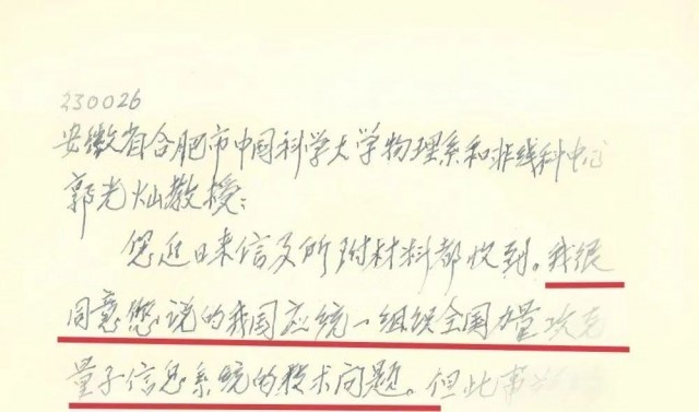 信中寫道:“我很同意您說的我國應(yīng)統(tǒng)一組織全國力量攻克量子信息系統(tǒng)的技術(shù)問題。”“此事關(guān)系到國家大事”,還就如何“組織全國力量”表達(dá)了看法。