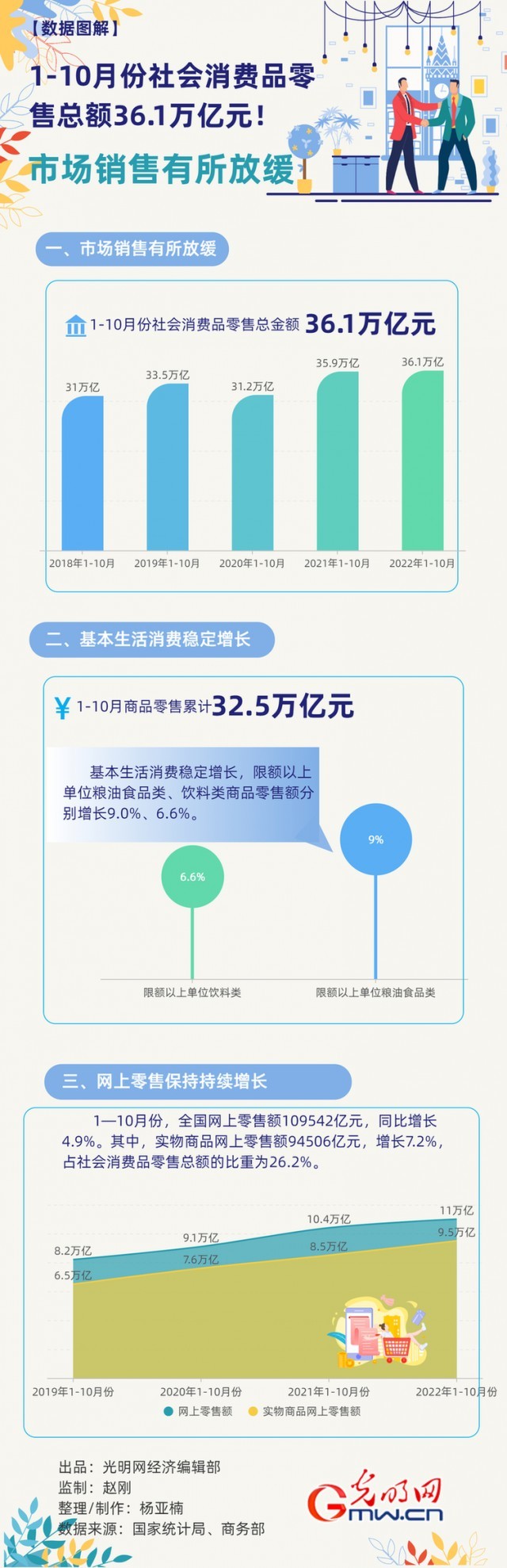 1-10月份社會(huì)消費(fèi)品零售總額36.1萬億元!市場(chǎng)銷售有所放緩