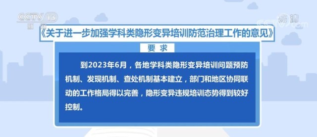 《意見》要求,到2023年6月,各地學(xué)科類隱形變異培訓(xùn)問題預(yù)防機(jī)制、發(fā)現(xiàn)機(jī)制、查處機(jī)制基本建立,部門和地區(qū)協(xié)同聯(lián)動(dòng)的工作格局得以完善,隱形變異違規(guī)培訓(xùn)態(tài)勢(shì)得到較好控制。到2024年6月,學(xué)科類隱形變異培訓(xùn)防范治理的長(zhǎng)效機(jī)制得到健全,治理工作態(tài)勢(shì)持續(xù)向好,隱形變異培訓(xùn)得以全面清除。