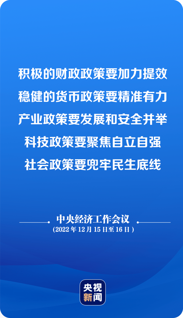 中央經(jīng)濟(jì)工作會議要求,明年要堅持穩(wěn)字當(dāng)頭、穩(wěn)中求進(jìn),繼續(xù)實施積極的財政政策和穩(wěn)健的貨幣政策,加大宏觀政策調(diào)控力度,加強(qiáng)各類政策協(xié)調(diào)配合,形成共促高質(zhì)量發(fā)展合力。