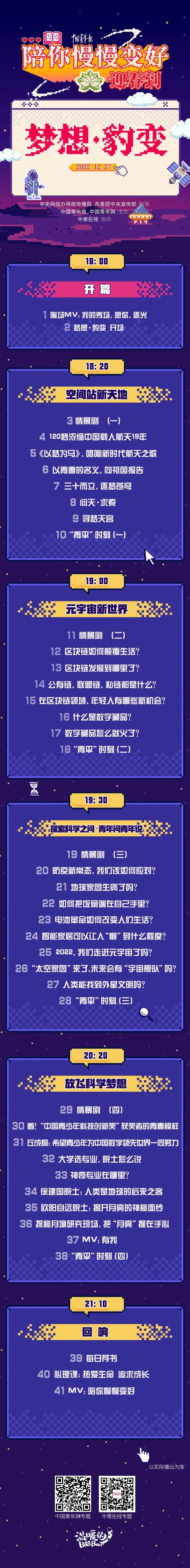 在這場聯(lián)播節(jié)目中,4位年輕記者將通過自己的經(jīng)歷和故事,和大家一起回顧2022年與科技創(chuàng)新有關(guān)的瞬間,重溫那些帶給我們“夢想”和“豹變”的激情時刻。聯(lián)播由空間站新天地、元宇宙新世界、探索科學之問、放飛科學夢想等四大篇章組成,重磅環(huán)節(jié)“探索科學之問”將聯(lián)合北京市科協(xié),共同推出聯(lián)名款“青年問青年說”,青年科學家和大學生一起盤點這些熱點科技問題:防疫新常態(tài),我們該如何應(yīng)對?極端天氣頻發(fā),地球家園生病了?2022年,我們走進元宇宙了嗎?“太空家園”來了,未來會不會有“宇宙艦隊”…… 12月27日,我們不見不散。