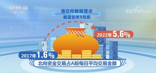 事實(shí)上,北向資金從去年末就在持續(xù)加大對(duì)中國(guó)資產(chǎn)的配置。國(guó)際金融協(xié)會(huì)統(tǒng)計(jì)顯示,去年11月流入中國(guó)資本市場(chǎng)的資金達(dá)85億美元,創(chuàng)去年單月新高。港交所數(shù)據(jù)顯示,截至去年9月底,北向資金交易占A股每日平均交易金額,由2017年的1.6%,升至2022年的5.6%。