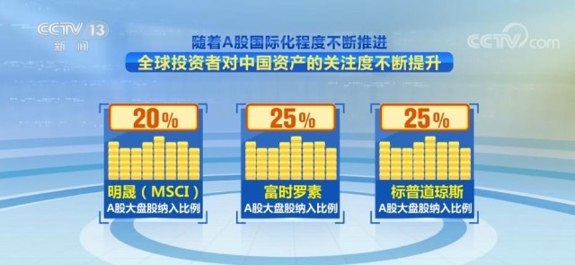 隨著A股國(guó)際化程度不斷推進(jìn),全球投資者對(duì)中國(guó)資產(chǎn)的關(guān)注度不斷提升。明晟(MSCI)、富時(shí)羅素和標(biāo)普道瓊斯的A股大盤股納入比例已分別達(dá)到20%、25%和25%。