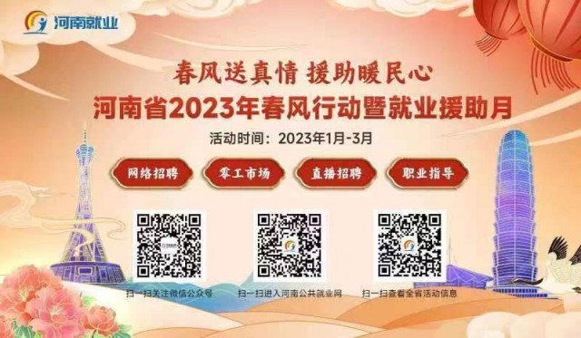 河南省通過“1+6省際勞務(wù)協(xié)作聯(lián)盟”平臺鋪路、省級專場活動(dòng)高位引領(lǐng)、“四進(jìn)”就業(yè)援助服務(wù)保障、線下線上同步直播送崗、零工市場全省聯(lián)動(dòng)快招等形式,把就業(yè)春風(fēng)送到群眾身邊。活動(dòng)期間,計(jì)劃組織1.6萬家企業(yè),舉辦2500場招聘活動(dòng),發(fā)布100萬崗位。