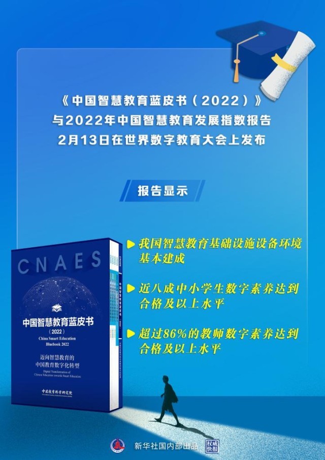 2月13日,在教育部與中國聯(lián)合國教科文組織全國委員會(huì)舉辦的世界數(shù)字教育大會(huì)上,《中國智慧教育藍(lán)皮書(2022)》與2022年中國智慧教育發(fā)展指數(shù)報(bào)告發(fā)布。