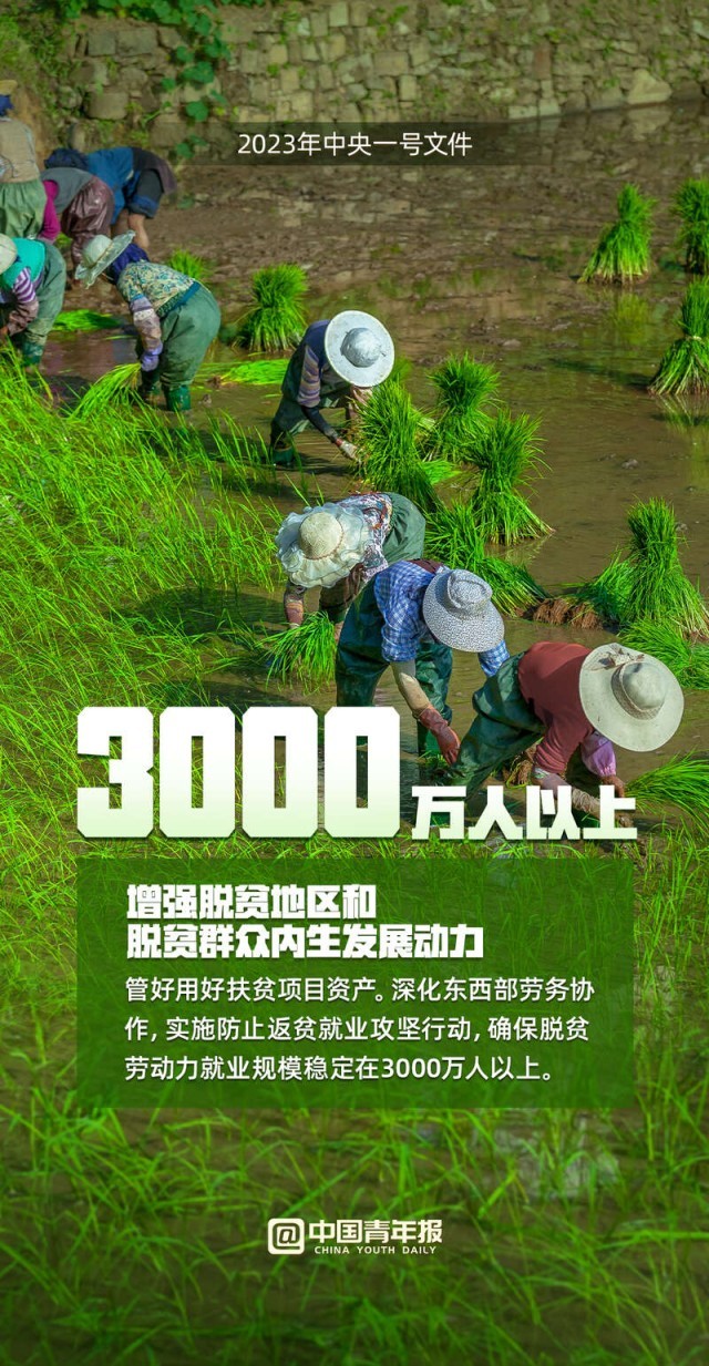 今年中央一號文件繼續(xù)將鞏固拓展脫貧攻堅成果,作為底線任務(wù)之一進(jìn)行強調(diào)部署。劉煥鑫表示,將抓監(jiān)測幫扶落實、抓發(fā)展動力培育、抓幫扶政策完善,深化東西部勞務(wù)協(xié)作,實施防止返貧就業(yè)攻堅行動,確保脫貧勞動力就業(yè)規(guī)模穩(wěn)定在3000萬人以上,“努力讓脫貧群眾生活更上一層樓?!?/p>