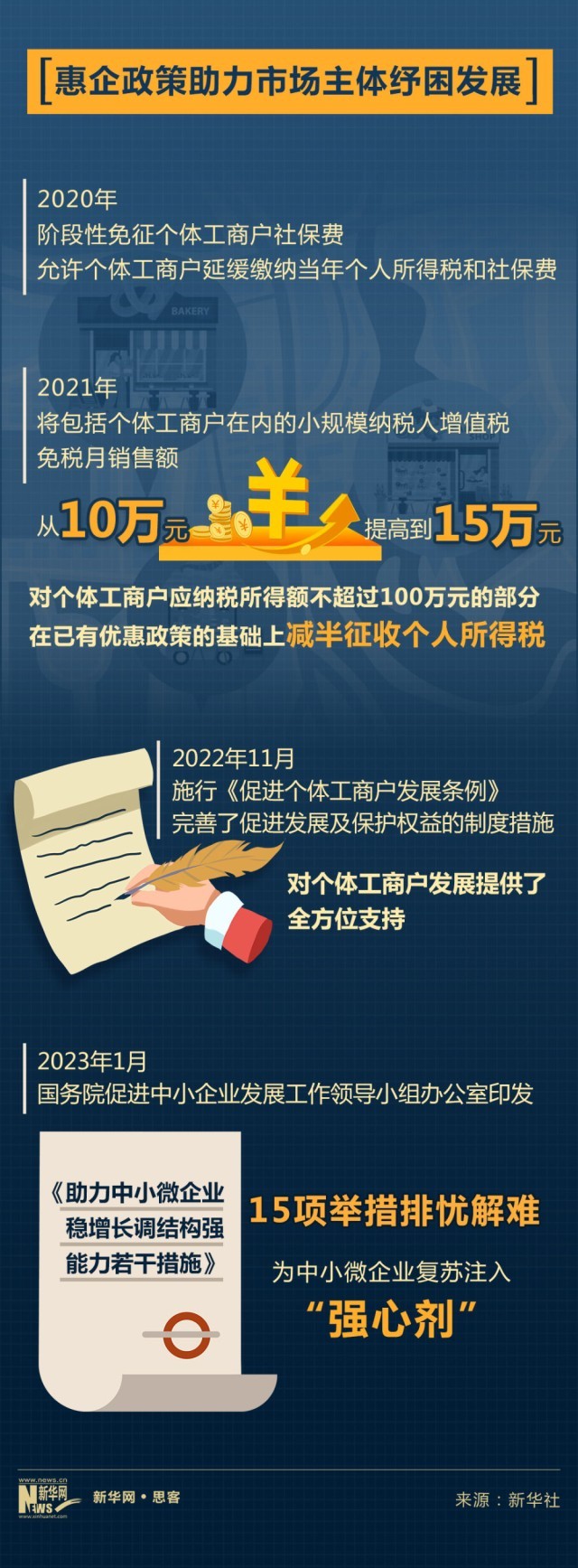 2021年,我國將包括個(gè)體工商戶在內(nèi)的小規(guī)模納稅人增值稅免稅月銷售額從10萬元提高到15萬元,對個(gè)體工商戶應(yīng)納稅所得額不超過100萬元的部分,在已有優(yōu)惠政策的基礎(chǔ)上減半征收個(gè)人所得稅。