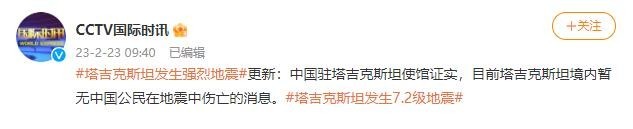 中國(guó)駐塔吉克斯坦使館:目前塔吉克斯坦境內(nèi)暫無(wú)中國(guó)公民在地震中傷亡消息