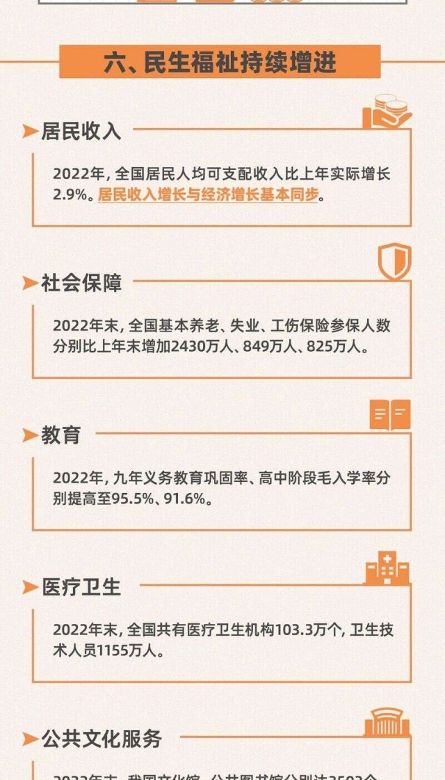 今日,國家統(tǒng)計(jì)局發(fā)布2022年國民經(jīng)濟(jì)和社會發(fā)展統(tǒng)計(jì)公報(bào)。初步核算,經(jīng)濟(jì)總量突破120萬億元,再上新臺階;全年糧食產(chǎn)量連續(xù)8年穩(wěn)定在1.3萬億斤以上;全部工業(yè)增加值首次超過40萬億元;全國城鎮(zhèn)新增就業(yè)1206萬人,超額完成年度目標(biāo)任務(wù);CPI月度漲幅始終低于3%;貨物進(jìn)出口總額首次突破40萬億元大關(guān);引資規(guī)模再創(chuàng)新高;全國居民人均可支配收入實(shí)際增長2.9%......轉(zhuǎn)存圖解,看看這些數(shù)字背后2022年的中國。
