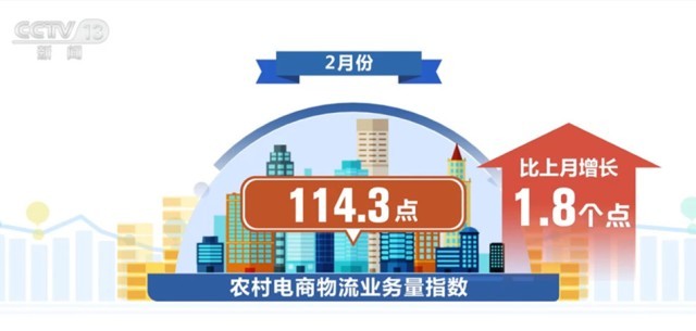 另外,農(nóng)村電商物流業(yè)務(wù)量連續(xù)增長(zhǎng)。2月份,農(nóng)村電商物流業(yè)務(wù)量指數(shù)為114.3點(diǎn),比上月增長(zhǎng)1.8個(gè)點(diǎn)。