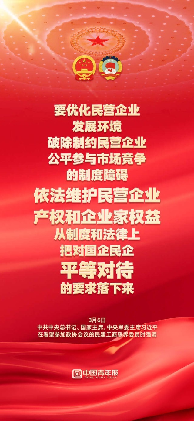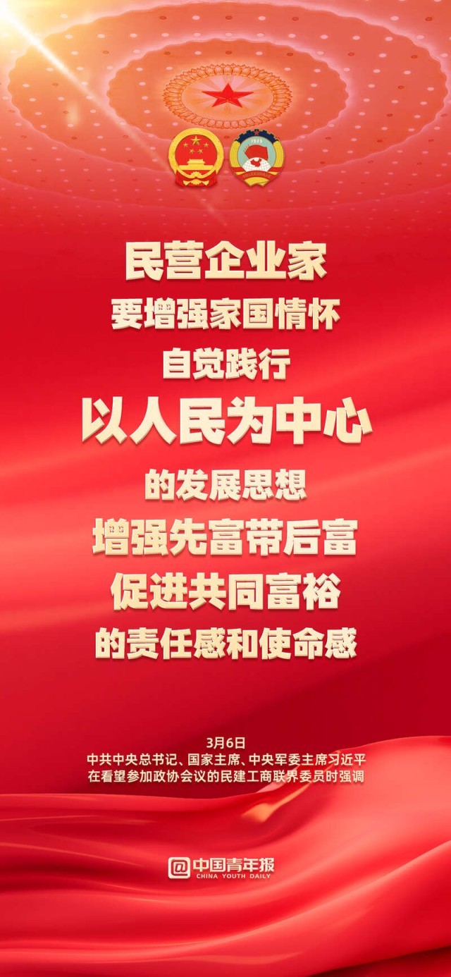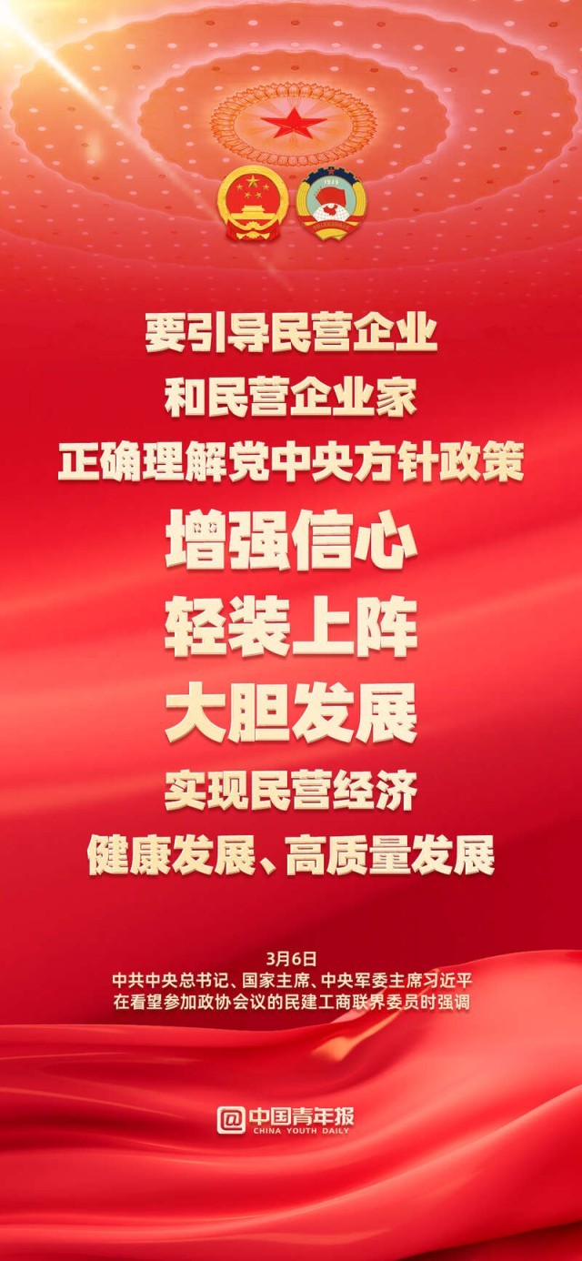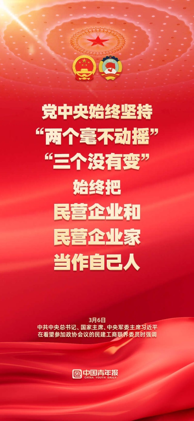 “始終把民營企業(yè)和民營企業(yè)家當(dāng)作自己人”;“無論是國有企業(yè)還是民營企業(yè),都是促進共同富裕的重要力量,都必須擔(dān)負促進共同富裕的社會責(zé)任。”3月6日下午,習(xí)近平總書記在看望參加政協(xié)會議的民建工商聯(lián)界委員時強調(diào),要正確引導(dǎo)民營經(jīng)濟健康發(fā)展高質(zhì)量發(fā)展。關(guān)于民營企業(yè)和民營企業(yè)家,總書記作出哪些重要論述,轉(zhuǎn)存金句,共同學(xué)習(xí)
