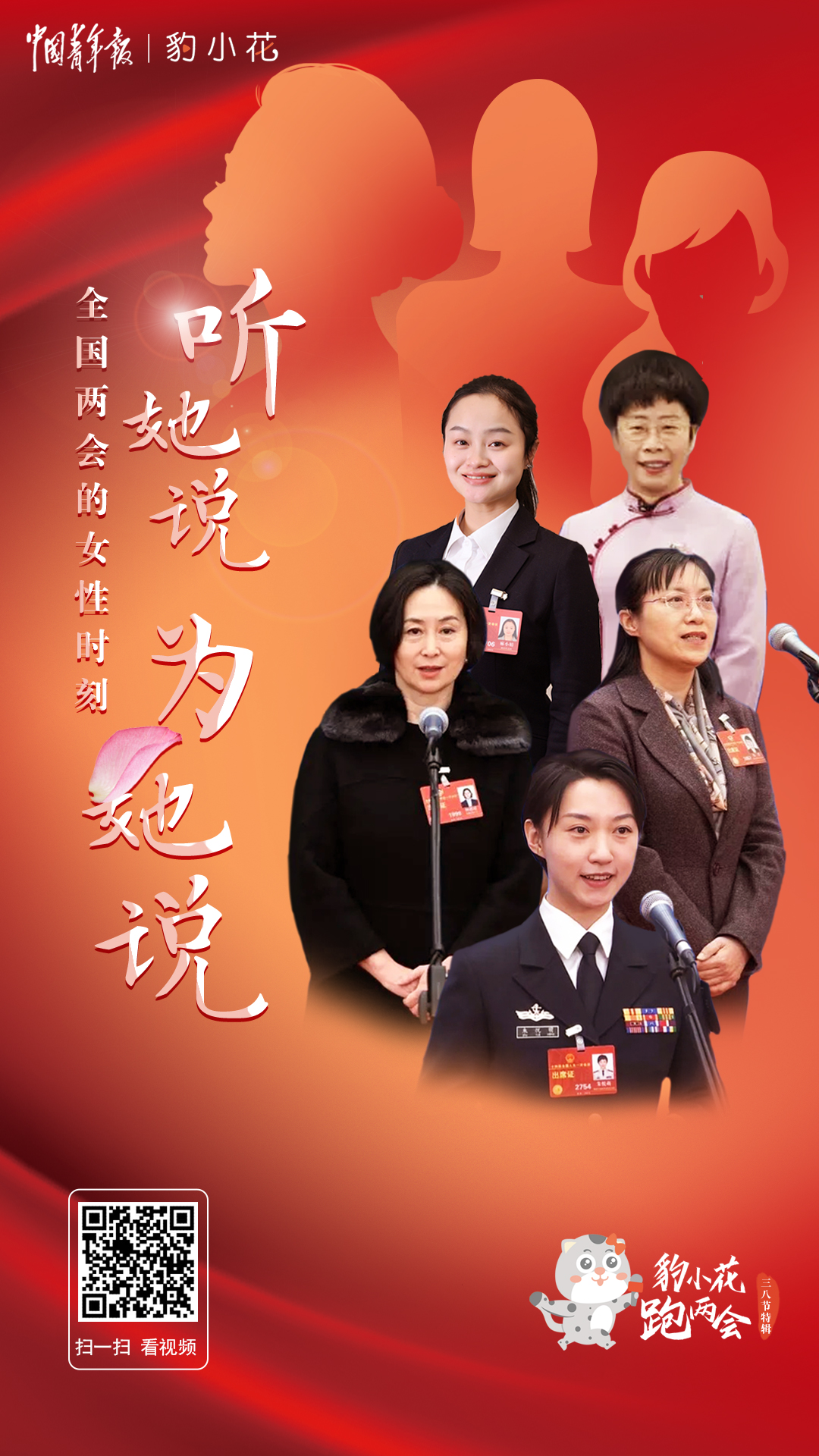 在今年全國兩會上,一位位女性代表委員履職建言,貢獻“她的聲音”:95后代表朱悅萌把青春和夢想融入祖國的航母事業(yè),她說,“艦艏行處是長城,國家利益所至,海軍航跡必達!”水慶霞代表說起中國女足的熱愛與堅持,鏗鏘玫瑰永不言敗。中國殘疾人聯合會理事楊洋委員說:“被光照耀的我們也想成為光照耀別人?!薄瑫r,也有不少代表委員在為女性群體的利益發(fā)聲。豹小花跑兩會今天推出三八國際婦女節(jié)特輯,和你一起關注全國兩會上的“女性時刻”。