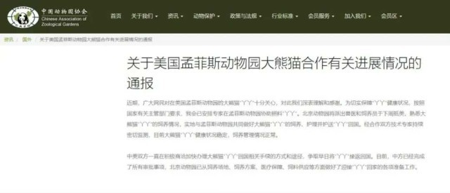 通報(bào)指出,中美雙方一直在積極商洽加快辦理大熊貓“丫丫”回國(guó)相關(guān)手續(xù)的方式和途徑,爭(zhēng)取早日將“丫丫”接返回國(guó)。目前,中方已經(jīng)完成了所有審批事項(xiàng),北京動(dòng)物園已從飼養(yǎng)場(chǎng)地、飼養(yǎng)方案、醫(yī)療保障、飼料供應(yīng)等方面做好了迎接“丫丫”回家的各項(xiàng)準(zhǔn)備工作。