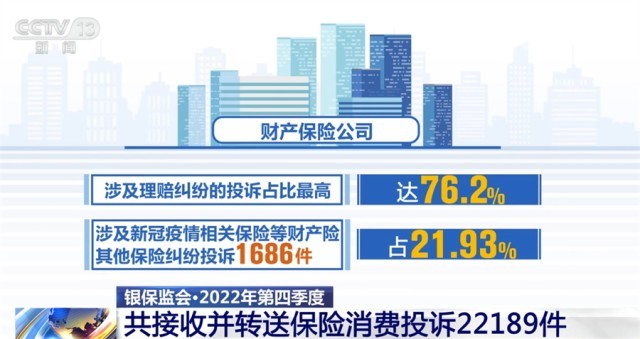2022年第四季度,中國(guó)銀保監(jiān)會(huì)及其派出機(jī)構(gòu)共接收并轉(zhuǎn)送保險(xiǎn)消費(fèi)投訴22189件。其中,涉及財(cái)產(chǎn)保險(xiǎn)公司、人身保險(xiǎn)公司的投訴分別占投訴總量的34.65%和65.35%。