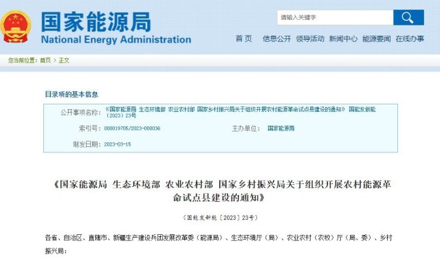 央視網(wǎng)消息:近日,國家能源局、生態(tài)環(huán)境部、農(nóng)業(yè)農(nóng)村部、國家鄉(xiāng)村振興局發(fā)布《關(guān)于組織開展農(nóng)村能源革命試點(diǎn)縣建設(shè)的通知》。具體如下: