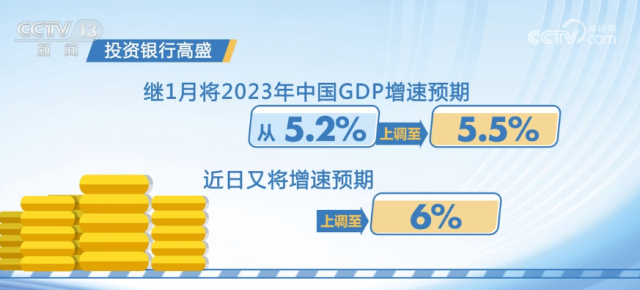 央視網(wǎng)消息:今年以來,國際機(jī)構(gòu)紛紛上調(diào)中國經(jīng)濟(jì)增長預(yù)期。投資銀行高盛繼1月將2023年中國GDP增速預(yù)期從5.2%上調(diào)至5.5%后,近日又將增速預(yù)期上調(diào)至6%。據(jù)國際貨幣基金組織測(cè)算,中國經(jīng)濟(jì)的強(qiáng)勁反彈意味著將在今年貢獻(xiàn)全球經(jīng)濟(jì)增長的約三分之一,將為世界經(jīng)濟(jì)帶來強(qiáng)勁的拉動(dòng)作用。