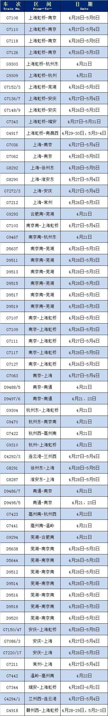 長三角鐵路五一假期增開多趟列車 詳細(xì)車次公布