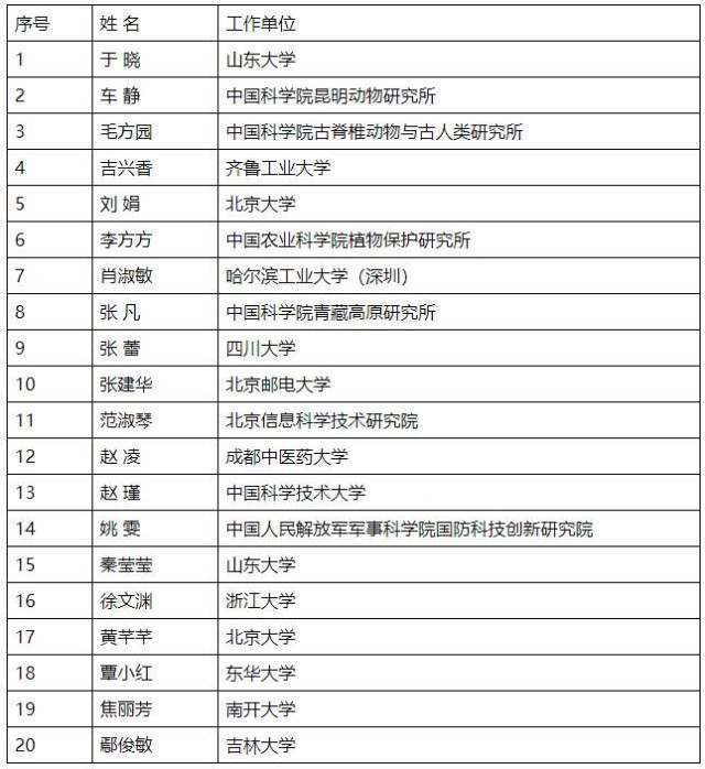 第十八屆中國青年女科學家獎揭曉 20人5支團隊獲獎
