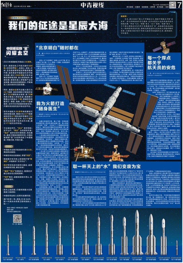 今天,我們迎來了第八個(gè)中國航天日。隨著中國航天不斷“走出去”,昔日的神秘面紗早已揭開,近年來更是以自信開放的姿態(tài)頻頻出圈:“神舟”飛天,“嫦娥”奔月,“北斗”指路,“祝融”探火,一個(gè)個(gè)國之重器成為當(dāng)代青少年最愛追的“星”。本版邀約奮戰(zhàn)在航天一線的優(yōu)秀青年代表,請他們講述逐夢太空征途上創(chuàng)造的精彩故事,以期吸引更多青少年加入探索宇宙奧秘的大軍,格物致知、叩問蒼穹。