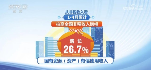 從非稅收入看,1月—4月累計(jì),全國(guó)非稅收入同比增長(zhǎng)6.8%。其中,國(guó)有資源(資產(chǎn))有償使用收入增長(zhǎng)26.7%,拉高了全國(guó)非稅收入增幅。全國(guó)行政事業(yè)性收費(fèi)收入和罰沒收入分別下降13.3%和18.7%。