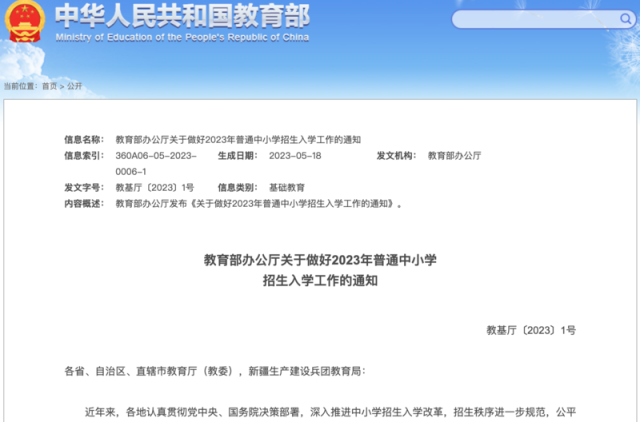 教育部:各地要做好2023年普通中小學(xué)招生入學(xué)工作 不得通過(guò)考試或變相考試選拔學(xué)生