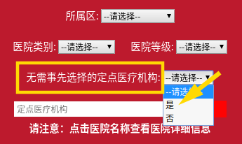 進(jìn)入頁(yè)面后,點(diǎn)擊“無(wú)需事先選擇的定點(diǎn)醫(yī)療機(jī)構(gòu)”選項(xiàng),選擇“是”。