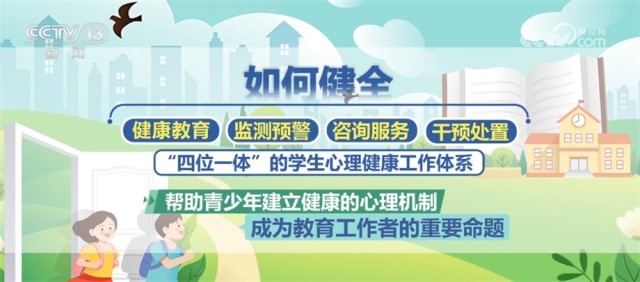 央視網(wǎng)消息:為了提前發(fā)現(xiàn)、干預(yù)學(xué)生心理問題,全國多地的大中小學(xué)校也在積極行動,強(qiáng)化心理監(jiān)測預(yù)警,整合社會資源,筑牢學(xué)生心理健康“防護(hù)墻”。