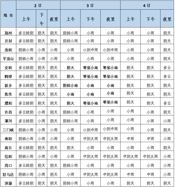 根據(jù)預(yù)報(bào),此次過(guò)程降水時(shí)段集中在3日下午到4日白天,過(guò)程累計(jì)降水量西南部、南部20到40毫米,部分縣市50到80毫米,中部偏南地區(qū)15到20毫米。黃河以南其他地區(qū)有小到中雨,降水量5到15毫米。新鄉(xiāng)、焦作、濟(jì)源有陣雨,降水量2到5毫米。安陽(yáng)、鶴壁、濮陽(yáng)以多云為主,有分散性小陣雨。