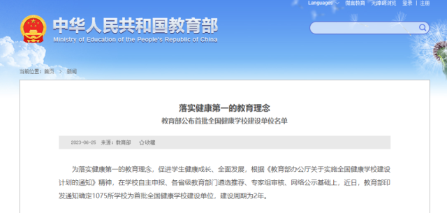 教育部公布首批全國健康學(xué)校建設(shè)單位名單