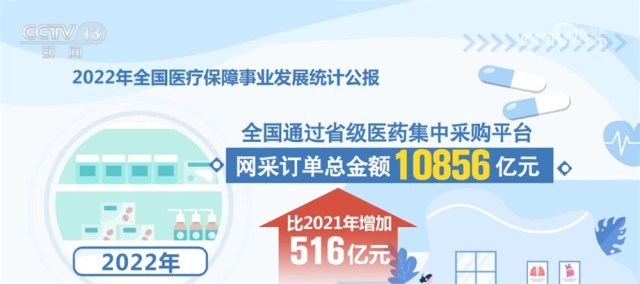 在藥品和耗材集采方面,2022年,第七批國家組織藥品集中帶量采購涉及61個品種,平均降價48%。國家組織骨科脊柱類高值醫(yī)用耗材集采納入5種脊柱類骨科耗材,平均降幅84%。根據(jù)公報,2022年,全國通過省級醫(yī)藥集中采購平臺網(wǎng)采訂單總金額10856億元,比2021年增加516億元。其中,西藥(化學(xué)藥及生物制品)8810億元,中成藥2046億元,分別比2021年增加495億元和21億元。群眾用上了更多質(zhì)優(yōu)價宜的藥品和耗材。