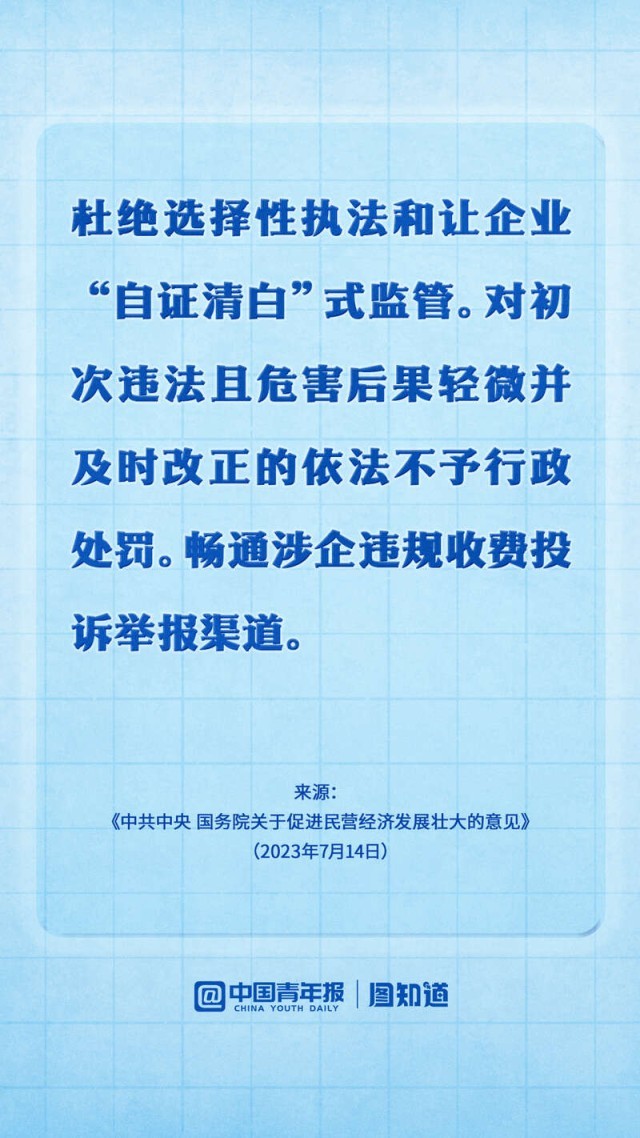 不得以備案、注冊(cè)等形式設(shè)定或變相設(shè)定準(zhǔn)入障礙,未經(jīng)公平競爭不得授予經(jīng)營者特許經(jīng)營權(quán),杜絕選擇性執(zhí)法和讓企業(yè)“自證清白”式監(jiān)管,依法嚴(yán)厲打擊以負(fù)面輿情為要挾進(jìn)行勒索等行為......中共中央、國務(wù)院近日印發(fā)《關(guān)于促進(jìn)民營經(jīng)濟(jì)發(fā)展壯大的意見》,其中提到多個(gè)“不得”,共同了解