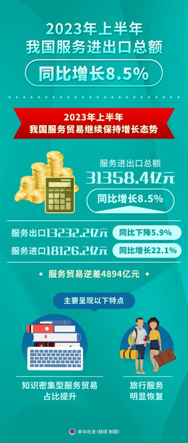 上半年我國服務(wù)進(jìn)出口總額同比增長8.5%