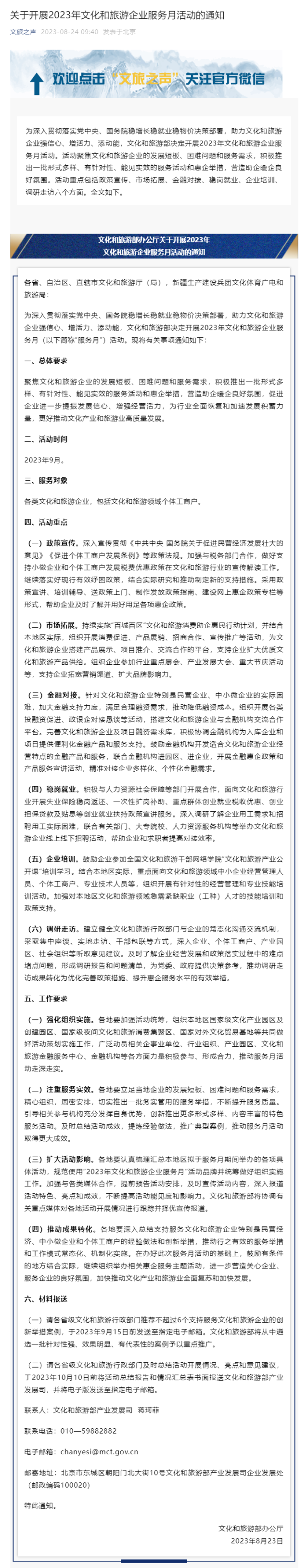 文旅部:將于9月開展2023年文化和旅游企業(yè)服務月活動