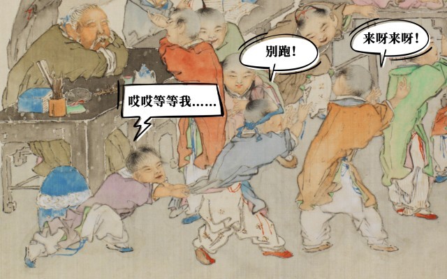 是清代錢慧安所作《百子圖冊(cè)》中的一開