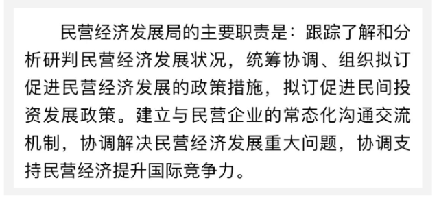 今天(9月4日)有個(gè)消息刷了屏:國家發(fā)改委新設(shè)民營經(jīng)濟(jì)發(fā)展局。仔細(xì)閱讀官方通稿,民營經(jīng)濟(jì)發(fā)展局主要職責(zé)103字,沒提一個(gè)“管”字。點(diǎn)擊視頻↓↓↓