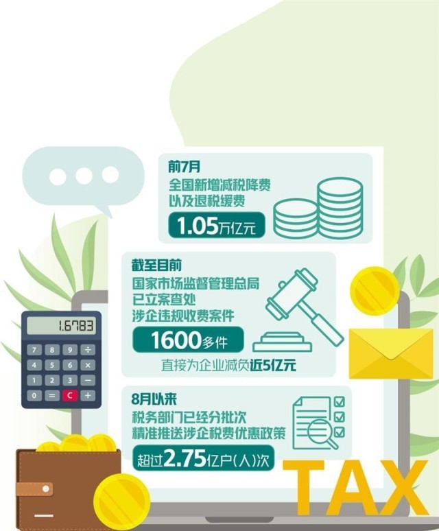 最新數(shù)據(jù)顯示,前7月,全國(guó)新增減稅降費(fèi)以及退稅緩費(fèi)1.05萬(wàn)億元。今年以來(lái),我國(guó)聚焦支持做強(qiáng)做優(yōu)實(shí)體經(jīng)濟(jì)、促增收擴(kuò)消費(fèi)、推動(dòng)高水平科技自立自強(qiáng)、支持戰(zhàn)略性新興產(chǎn)業(yè)發(fā)展等多方面舉措,打出一套稅費(fèi)政策組合拳,實(shí)打?qū)嵵С制髽I(yè)紓困發(fā)展。