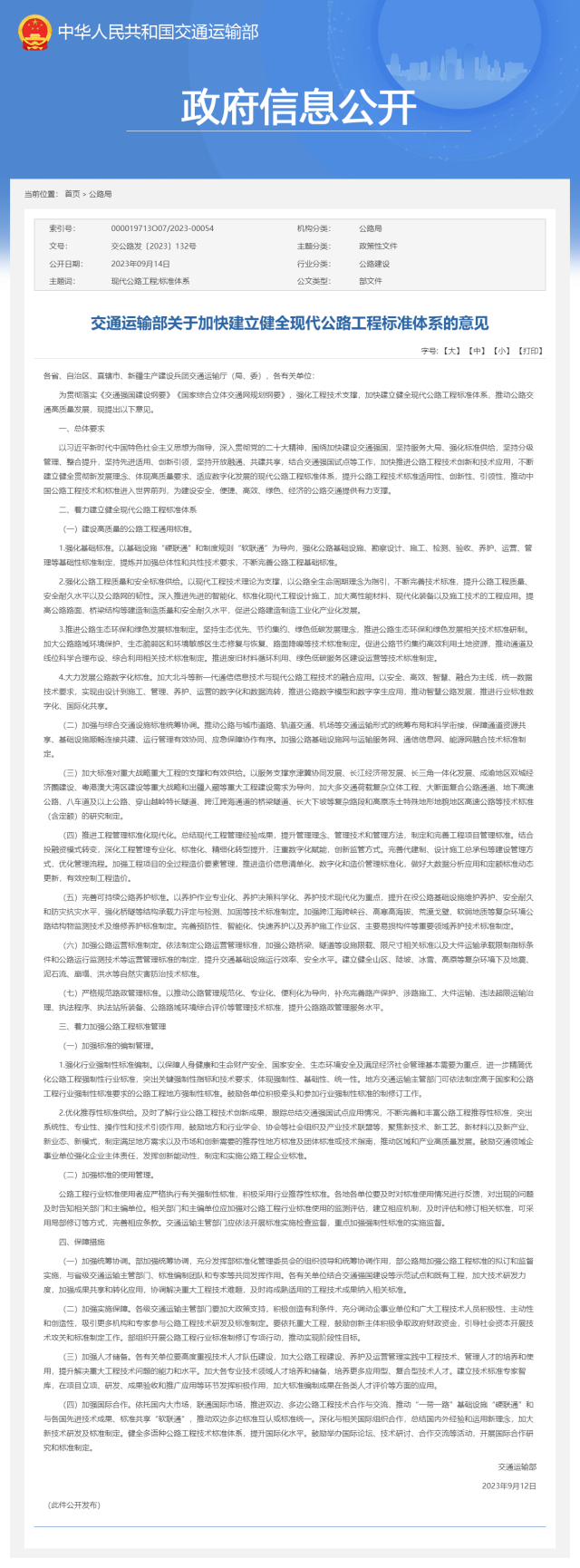 央視網(wǎng)消息:交通運(yùn)輸部發(fā)布關(guān)于加快建立健全現(xiàn)代公路工程標(biāo)準(zhǔn)體系的意見(jiàn)。其中提出,大力發(fā)展公路數(shù)字化標(biāo)準(zhǔn)。加大北斗等新一代通信信息技術(shù)與現(xiàn)代公路工程技術(shù)的融合應(yīng)用。以安全、高效、智慧、融合為主線,統(tǒng)一數(shù)據(jù)技術(shù)要求,實(shí)現(xiàn)由設(shè)計(jì)到施工、管理、養(yǎng)護(hù)、運(yùn)營(yíng)的數(shù)字化和數(shù)據(jù)流轉(zhuǎn),推進(jìn)公路數(shù)字模型和數(shù)字孿生應(yīng)用,推動(dòng)智慧公路發(fā)展,推進(jìn)行業(yè)標(biāo)準(zhǔn)數(shù)字化、國(guó)際化共享。
