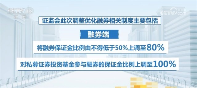 證監(jiān)會此次調(diào)整優(yōu)化融券相關(guān)制度主要包括:融券端,將融券保證金比例由不得低于50%上調(diào)至80%,對私募證券投資基金參與融券的保證金比例上調(diào)至100%;出借端,取消上市公司高管及核心員工通過參與戰(zhàn)略配售設(shè)立的專項資產(chǎn)管理計劃出借,適度限制其他戰(zhàn)略投資者在上市初期的出借方式和比例。