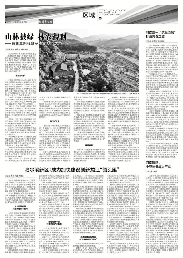 “首張林票發(fā)行、首個全國林業(yè)改革發(fā)展綜合試點市、首創(chuàng)國有林場差異化績效管理激勵機(jī)制……一系列改革舉措先行先試,始終緊扣實現(xiàn)生態(tài)效益、社會效益和百姓收益共贏。”三明市林業(yè)局局長陳平說,2022年,三明市林業(yè)產(chǎn)業(yè)總產(chǎn)值達(dá)1258億元,農(nóng)民涉林收入達(dá)7107元,占可支配收入的30.6%。