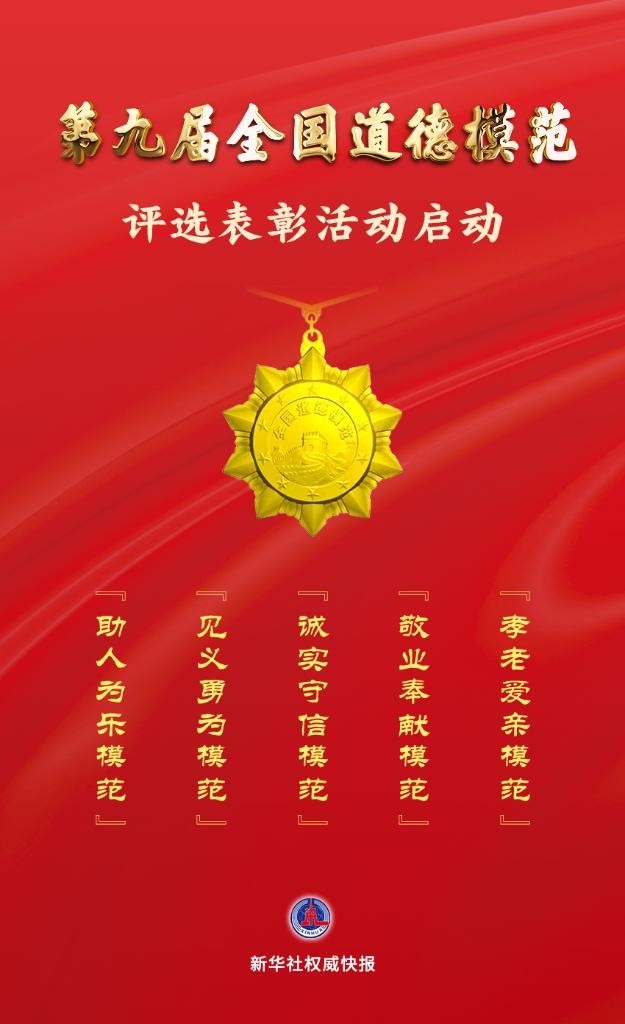 據(jù)悉,第九屆全國道德模范分為“助人為樂模范”“見義勇為模范”“誠實(shí)守信模范”“敬業(yè)奉獻(xiàn)模范”“孝老愛親模范”5個類別,通過群眾推薦、遴選審核、公示宣傳、投票評選等步驟評選產(chǎn)生。