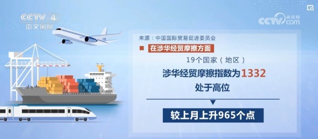 在涉華經(jīng)貿(mào)摩擦方面,19個(gè)國(guó)家(地區(qū))涉華經(jīng)貿(mào)摩擦指數(shù)為1332,處于高位,較上月上升965個(gè)點(diǎn)。